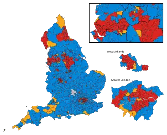 A map of English parliamentary constituencies *Seat figure does not include the Speaker of the House of Commons, John Bercow, who was included in the Conservative seat total by some media outlets. † Owing to electoral boundaries changing, this figure is notional. |