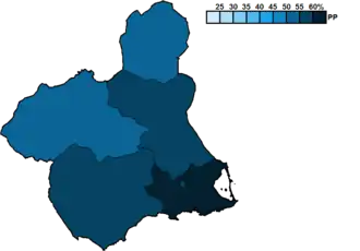 ![]() Constituency results map for the Regional Assembly of Murcia | |||||||||||||||||||||||||||||||||||||||||||||||||
