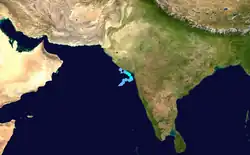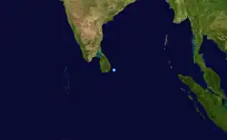 On November 26, at 11:30 am IST, the IMD upgraded a low-pressure area south of India near Cape Comorin into a depression, giving it the designation ARB 04.[46] The same day, the JTWC upgraded the storm from a tropical depression to a Tropical Storm and named it 05A.[47] Extensive damage and loss of life was reported in Sri Lanka, where the storm was linked with heavy rains which caused 19 deaths and damage to 5,700 homes.[48] The IMD upgraded the storm to a Deep Depression on November 28.[49] Later on November 29 the IMD downgraded the storm into a depression.[50] Following the downgrading of the storm by IMD, the JTWC on November 30 issued their final warning on 05A. The IMD reported on December 1 that the storm had weakened into a well-marked low-pressure area, and issued the final bulletin for the system.[51]