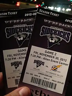 - ^ a b c Betsill, Jay (January 14, 2013). "Checking out the Dallas Sidekicks game". Fort Worth Star-Telegram. Retrieved January 16, 2013.