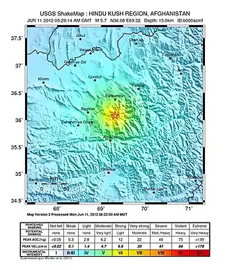 - ^ ANSS. "Hindu Kush 2012b: M 5.7 – Hindu Kush region, Afghanistan". Comprehensive Catalog. U.S. Geological Survey.