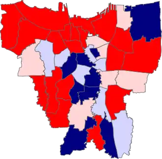 The first round resulted with two top-voted candidates, Joko Widodo and Fauzi Bowo to advance to the runoff as neither received majority of votes in the first round. Quick count results released in mass media after the second round voting indicated that Joko Widodo is projected to win the runoff with 54% of popular votes.[3][4] Fauzi Bowo later conceded and congratulated Joko on 17.00 WIB.[5] Official results were announced on 29 September.[6] Widodo won the election with 53.82% of votes against Bowo's 46.18%.