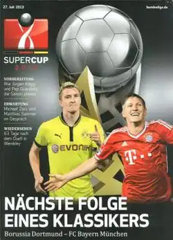 The 2013 DFL-Supercup was the fourth DFL-Supercup, an annual football match contested by the winners of the previous season's Bundesliga and DFB-Pokal competitions. It featured Bayern Munich, winners of the 2012–13 Bundesliga and the 2012–13 DFB-Pokal, and, as a result of the former winning both competitions, the Bundesliga runners-up Borussia Dortmund. The match was hosted by Dortmund at the Signal Iduna Park on 27 July 2013.[1] The match took place two months after the same teams played each other in the 2013 UEFA Champions League final.