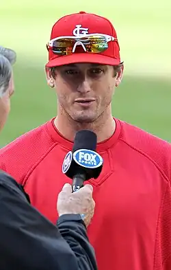 The team chartered an overall successful opening month, finishing with a 15–11 record (.577 winning percentage) and in first place in the NL Central. However, it was not without challenges: the rest of the division played also very competitively, with the Milwaukee Brewers, the Pittsburgh Pirates and the Cincinnati Reds each finished the month within one game of the Cardinals.[53] An outstanding effort by the starting pitching won all 15 games in the month (2.15 ERA in 167 innings, and 1.152 WHIP with 8.2 SO per nine innings) and timely hitting (.350 BA, .940 OPS with RISP) covered for an otherwise dismal offense (.245 BA, 20 home runs and .677 OPS) and dysfunctional bullpen (0–5, 5.82 ERA in 66 innings).[54][55]Starting pitcherAdam Wainwright began the season with 34 2/3 consecutive innings without issuing a walk, the longest such streak in team history since 1913, when Slim Sallee began the season with 40 consecutive innings (the team record).[56][57] Wainwright led the league with 171 batters faced and in pitching 44 1/3 innings. Wainwright and Lance Lynn tied for the NL lead with four wins each, while Jake Westbrook led the league with a 0.98 ERA. Rookie Shelby Miller finished the month with a 2.05 ERA, 1.011 WHIP and 9.7 strikeouts per nine innings.[58]