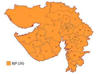 In the 2014 Indian general election for Gujarat that were held for 26 seats in the state, the major two contenders in the state were Bharatiya Janta Party (BJP) and the Indian National Congress (INC). BJP won all 26 seats.[1]