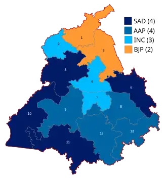 12 Sangrur 30 April 2014 16 May 2014 Vijay Inder Singla Sukhdev Singh Dhindsa Bhagwant Mann