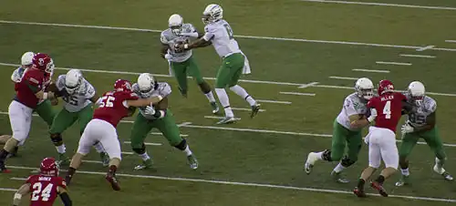 | Offensive scheme | No-huddle spread option |