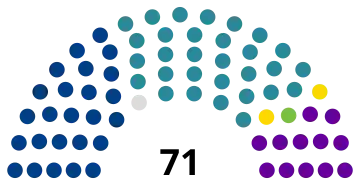 Of the 71 members of the National Assembly, 26 were elected in single-member constituencies and 45 by proportional representation in multi-member constituencies. Each district with more than 40,000 inhabitants forms a constituency. Constituencies elect one MP for every 30,000 residents and an additional representative for every fraction over 10,000.[3]