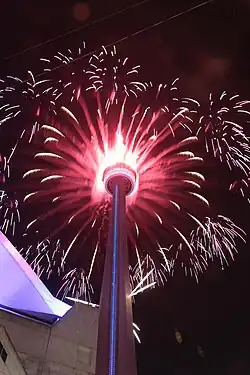 In 2014 Live Nation was announced as a sponsor of the games; organizers stated that the company would leverage its resources to invite Canadian and international acts to perform at the ceremony.[4] On July 15, 2015, organizers confirmed that American hip-hop artist Kanye West would headline the closing ceremony, joined by Pitbull and Serena Ryder.[5] The announcement of West's participation was controversial, as critics and others believed that the closing ceremony should have been headlined by a Canadian artist; over 30,000 signatures were made on a Change.org petition to have him replaced. Mayor of Toronto John Tory, was also criticized for mistakenly referring to West as being a "proud product" of Toronto, despite actually being born in Atlanta.[6][7][8]