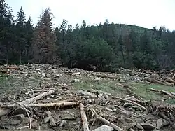 Outside of Philmont, there had been reports of mudflows and flooding along U.S. Route 64.[12] Boulders also tumbled down from canyons in the Cimarron area, causing damage to and blockage of roads.[13]