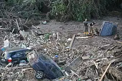 About 36 people were hospitalized for mild-to-moderate injuries; most of them were discharged from hospitals on the same day. Of the 24 people reported as missing as of late 14 June,[8] 6 remained unaccountable for on 16 June.[9][10] More than 40 families were left homeless and 22,000 people were left without electricity.[2][11] The Georgian government reported a preliminary estimated flood damage cost from GEL 40 million[12] to 100 million.[13]