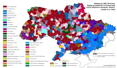 - ^ a b РАДА ПРИЙНЯЛА ЗАКОН ПРО МІСЦЕВІ ВИБОРИ [The Rada adopted the law on local elections] (in Ukrainian). Ukrainska Pravda. 14 July 2015. Retrieved 5 July 2018.