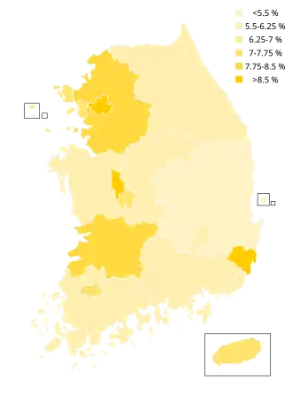| South Gyeongsang | 44.0 | 24.4 | 17.4 | 6.5 | 7.7 |
