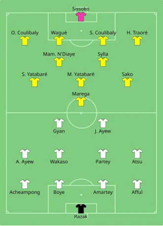 - ^ a b "Ghana 1 - 0 Mali Team line-ups 1/21/17 - Africa Cup of Nations". Goal.com. Perform Group. 21 January 2017. Retrieved 21 January 2017.