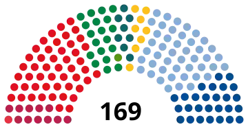 Last election 55 seats, 30.84% 48 seats, 26.81% 29 seats, 16.35%