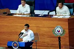 ![]() President Rodrigo Duterte delivering his second State of the Nation Address at the Batasang Pambansa in Quezon City | |
