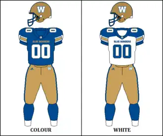 The 2017 CFL Draft took place on May 7, 2017.[2] The Blue Bombers had eight selections in the eight-round draft after trading former starting quarterback Drew Willy for the first overall pick.[3] They lost fourth and fifth round picks in trades for quarterbacks Kevin Glenn and Matt Nichols, respectively.[3][4] The Bombers obtained another fourth round pick after trading down in the draft with the Stampeders.[5]