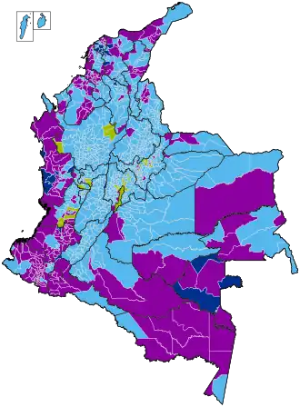 | San Andrés & Providencia | 9,303 | 61.20% | 5,282 | 34.75% | 614 | 4.03% |