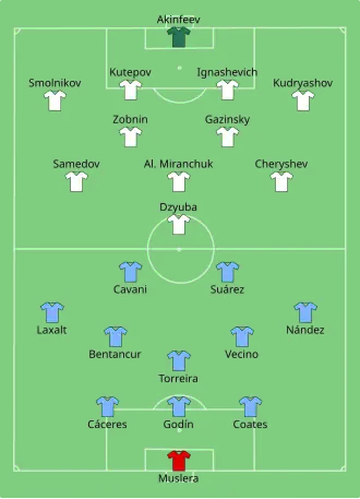 - ^ a b c "Tactical Line-up – Group A – Uruguay v Russia" (PDF). FIFA.com. Fédération Internationale de Football Association. 25 June 2018. Retrieved 25 June 2018.