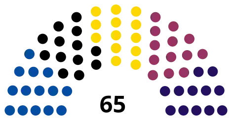 All 65 seats in the Assembly 33 seats needed for a majority | ||||||||||||||||||||||||||||||||||||||||||||||||||||||||||||||||||||||||||||||