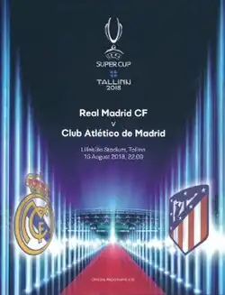 The 2018 UEFA Super Cup was the 43rd edition of the UEFA Super Cup, an annual football match organised by UEFA and contested by the reigning champions of the two main European club competitions, the UEFA Champions League and the UEFA Europa League. The match featured two Spanish sides, Real Madrid, the winners of the 2017–18 UEFA Champions League and the defending champions having won the previous two editions, and Atlético Madrid, the winners of the 2017–18 UEFA Europa League.[5] It was played at the Lilleküla Stadium in Tallinn, Estonia, on 15 August 2018, and was the first European club final held in Estonia.[6]