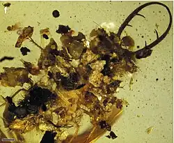 - ^ Victoria E. McCoy; Carmen Soriano; Mirko Pegoraro; Ting Luo; Arnoud Boom; Betsy Foxman; Sarah E. Gabbott (2018). "Unlocking preservation bias in the amber insect fossil record through experimental decay". PLOS ONE. 13 (4): e0195482. Bibcode:2018PLoSO..1395482M. doi:10.1371/journal.pone.0195482. PMC 5886561. PMID 29621345.
