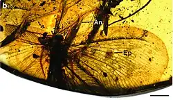 - ^ Qingqing Lin; Lingjie Kong; Chungkun Shih; Yunyun Zhao; Dong Ren (2018). "The latest record of Hexagenitidae (Insecta: Ephemeroptera) with elongated abdominal sternum IX from mid-Cretaceous Myanmar amber". Cretaceous Research. 91: 140–146. Bibcode:2018CrRes..91..140L. doi:10.1016/j.cretres.2018.05.014. S2CID 133798614.
