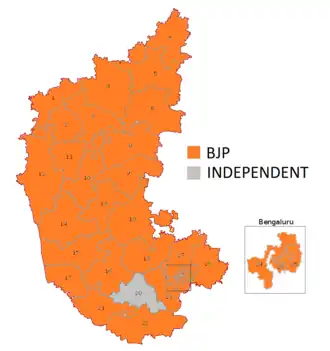 BJP won 25 seats. INC won 1 seat and JD(S) won 1 seat .Independent (Supported by BJP) Won 1 Seat.