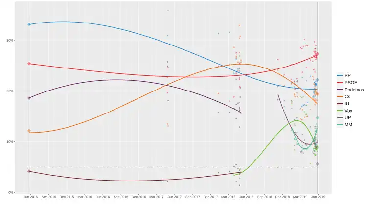 - ^ "Estimación Mayo 2018. Comunidad de Madrid. Autonómicas 2019". SyM Consulting (in Spanish). 8 May 2018.