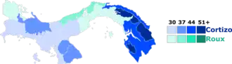 General elections were held in Panama on 5 May 2019.[3] Due to constitutional term limits, incumbent President Juan Carlos Varela was ineligible for a second consecutive term.[4] Businessman and politician Laurentino Cortizo of the centre-left Democratic Revolutionary Party won the election with around 33% of the vote, narrowly defeating Rómulo Roux of the centre-right Democratic Change, who won 31% of the vote. The PRD also won a majority in the National Assembly.[5] The ruling Panameñista Party of President Juan Carlos Varela suffered its worst result in history.[6] Its candidate, Panama City mayor José Isabel Blandón, received only 11% of the vote and came in fourth behind independent candidate Ricardo Lombana.[5] The party also lost half its seats in the National Assembly.[6]