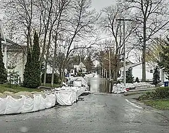 ![]() Flooded street and Dyke in Laval-Ouest, 14 May 2019 | |