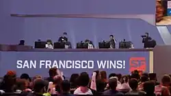 The Shock's first match of Stage 4, along with the first match with an enforced 2-2-2 role lock by the League, was against the Seoul Dynasty on July 26. The Shock adapted to the new role lock by subbing in and out players depending on the map type and composition they wanted to run; the strategy proved to be successful, as they took down the Dynasty 3–1.[39] The following week, the team took on the Los Angeles Gladiators. San Francisco found themselves down 1–2 going into map four, but they rallied back to tie up the series and bring the match to a fifth tiebreaker map. The Shock closed out the series with a map five win to take a 3–2 victory.[40] The team's next match was against the Shanghai Dragons, who they had lost to in the Stage 3 Finals, on August 9. The Shock continued to effectively try out new rosters and won their "revenge match" by a score of 3–1.[41] The team continued to roll, as two days later, they swept the Dallas Fuel 4–0.[42] The following week, San Francisco took down the Chengdu Hunters 4–0.[43] For their final week of play, the Shock headed to The Novo in Los Angeles to play in the Kit Kat Rivalry Weekend, hosted by the Los Angeles Valiant. The Shock's first match of the weekend was against the Vancouver Titans on August 24. It was the fourth meeting between the two teams in the 2019 season, and the Titans held a 2–1 head-to-head record over the Shock. After getting dismantled on Lijiang Tower, San Francisco evened up the match score by winning on Volskaya Industries. The two teams traded wins on maps three and four, pushing the match to a fifth tiebreaker match; the Shock dominated on map five to take a 3–2 match victory and even up the team's head-to-head record.[44] For their final match of the regular season, the Shock took on the Los Angeles Valiant for the "California Cup" on August 25.[45] The Shock closed out the regular season on a high note, as they picked up their sixteenth 4–0 sweep of the regular season.[46] The win gave the team a 23–5 record – the second best in the league – and the third seed in the season playoffs.[47]