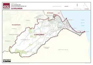 ![]() Map of the Electoral district of Currumbin since the 2017 state election | |||||||||||||||||||||||||||||||||||||