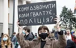 The 2020 Kaharlyk police rape took place in May 2020 in Ukraine, garnering extensive media coverage. On May 23, 2020, police officers in the town of Kaharlyk in Kyiv Oblast (province) tortured and raped a woman who was being kept in police custody. The event caused a public outcry.[1]