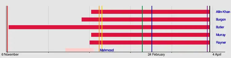 - 13 January: MP/MEP nominations close, party announces that Allin-Khan, Burgon, Butler, Murray and Rayner all proceed to the next round