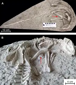 - ^ Claudio Labita; David M. Martill (2020). "An articulated pterosaur wing from the Upper Cretaceous (Maastrichtian) phosphates of Morocco". Cretaceous Research. 119 104679. doi:10.1016/j.cretres.2020.104679. S2CID 226328607.