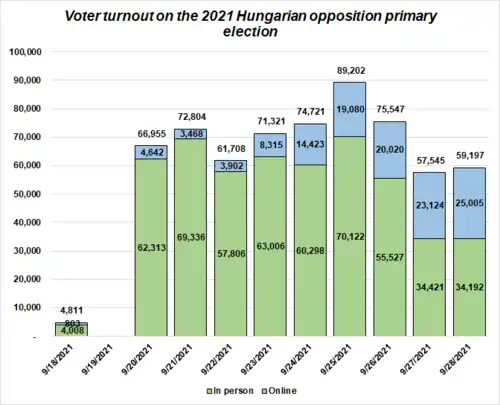 - ^ "Szombaton is rekordmennyiségű ember ment el szavazni az előválasztáson". telex (in Hungarian). 2021-09-26. Retrieved 2021-09-26.