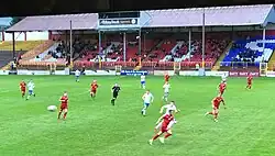 Fans returned to Tolka Park for the first time since the start of the COVID-19 pandemic on 25 June 2021, with 100 supporters allowed in for the visit of Cork City. The 2–1 win gave Shelbourne an 11-point lead at the top of the league table.[7] Sean Quinn and Glen McAuley departed the club in July, while Eric Molloy, Kameron Ledwidge and Yassine En-Neyah arrived as Shelbourne looked to strengthen their squad ahead of the final ten games.[8][9][10][11] Molloy made his debut as a substitute as Shels exited the FAI Cup in the first round via a 0–2 defeat away to UCD[12] Due to squad absences a much changed team lined up against UCD in the league on 7 August 2021, with Under-19's goalkeeper Jack McCarthy making his debut and keeping a clean sheet after Brendan Clark and Jack Brady were unavailable for selection.[13] Shelbourne suffered their first defeat of the season away to Galway United the following week, but would only lose one other game during the remainder of the season.[14]