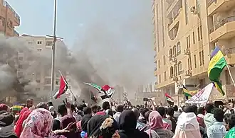 Key civilian groups including the Sudanese Professionals Association and Forces of Freedom and Change called for civil disobedience and refusal to cooperate with the coup organisers.[13] Protests started on 25 and 26 October against the coup and at least 10 civilians were reported as being killed and over 140 injured by the military during the first day of protests.[13][14][15] Protests and strikes continued, with 200,000 to 2,000,000 protestors participating around Sudan on 30 October[16][17] and 15 shot dead by security forces in protests organised by the Sudanese resistance committees on 17 November.[18][19]