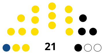 15 of the 21 seats in the House of Assembly 8 seats needed for a majority | |||||||||||||||||||