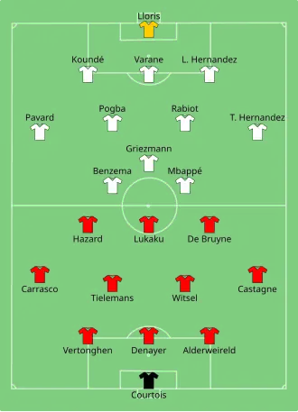 - ^ a b c "Tactical Line-ups – Semi-finals – Belgium v France" (PDF). UEFA. Union of European Football Associations. 7 October 2021. Archived from the original (PDF) on 7 October 2021. Retrieved 7 October 2021.