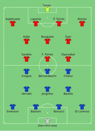 - ^ a b c "Tactical Line-ups – Semi-finals – Italy v Spain" (PDF). UEFA. Union of European Football Associations. 6 October 2021. Archived from the original (PDF) on 6 October 2021. Retrieved 6 October 2021.