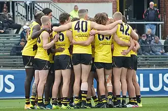 The governing bodies took deliberate moves to strengthen the VFL's utility as a pathway league, through which undrafted players from the underage systems could continue to develop and then be drafted into the AFL system. In doing this, age restrictions were set requiring each team to field at least six under-22 players in each game.[16] Under-age players were allocated to clubs on a zoning basis, with each NAB League club and academy system allocated to a specific VFL club or clubs, thus allowing for greater interchange and continuity.[17]