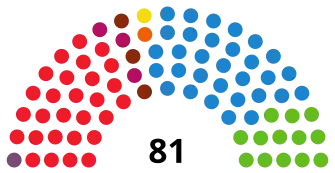 The Cortes of Castile and León were the devolved, unicameral legislature of the autonomous community of Castile and León, having legislative power in regional matters as defined by the Spanish Constitution and the Castilian-Leonese Statute of Autonomy, as well as the ability to vote confidence in or withdraw it from a regional president.[7] Voting for the Cortes was on the basis of universal suffrage, which comprised all nationals over 18 years of age, registered in Castile and León and in full enjoyment of their political rights. Additionally, Castilian-Leonese people abroad were required to apply for voting before being permitted to vote, a system known as "begged" or expat vote (Spanish: Voto rogado).[8]