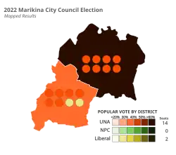 16 of 18 seats in the Marikina City Council 10 seats needed for a majority | |||||||||||||||||||||||||||||||||||||