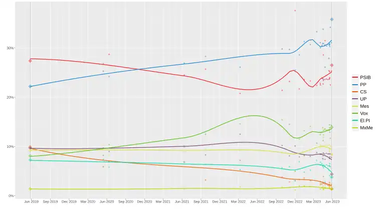 - ^ "ElectoPanel Islas Baleares / El PSOE sube y tiene posibilidades de mantener el gobierno". El Plural (in Spanish). 8 April 2023.
