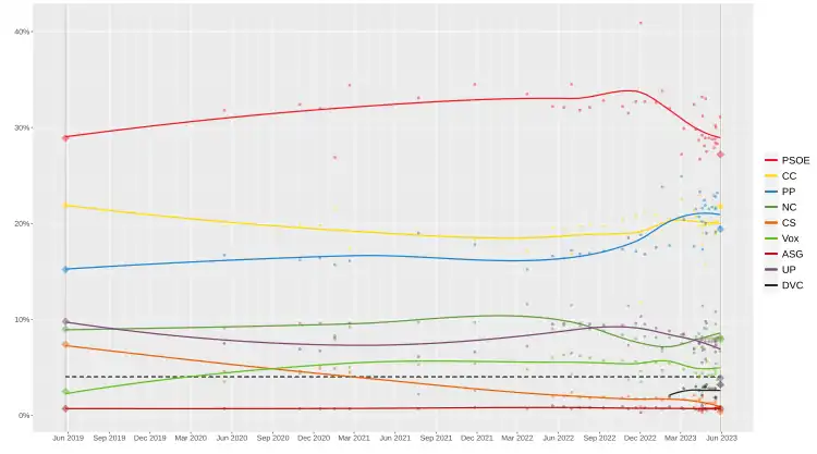 - ^ "Una encuesta vaticina el 'sorpasso' del PP a CC en las elecciones regionales del 28-M". Canarias Ahora (in Spanish). 28 April 2023.