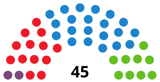 The table below shows the composition of the parliamentary groups in the Regional Assembly at the time of dissolution.[7][8]