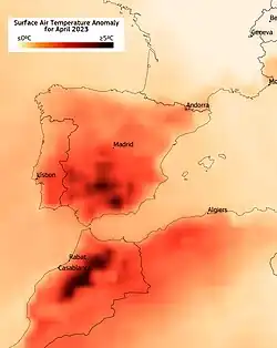 - ^ "A record heatwave hit Spain in April 2023 | Copernicus". www.copernicus.eu. Archived from the original on 25 May 2023. Retrieved 25 May 2023.