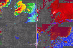 Bottom: The hook echo of the tornado seen on NEXRAD radar as it moved through Barnsdall and Bartlesville. | |